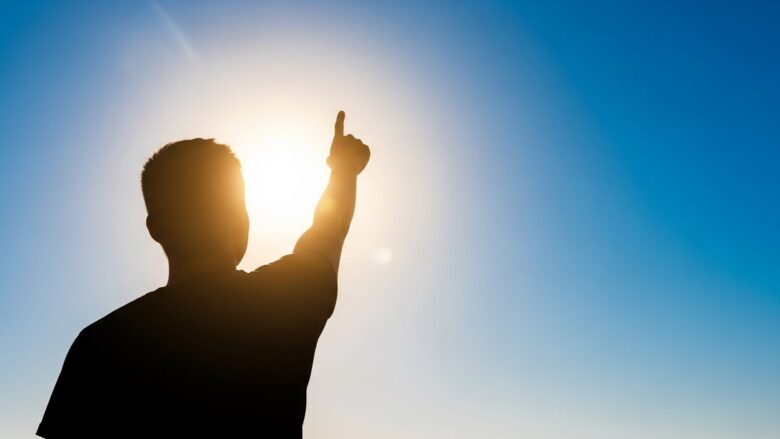 デスクの片隅に、天道を指差すポーズで飾ってみてください。