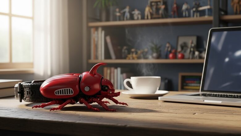 無駄な装飾を削ぎ落とし、赤と黒、そして複眼の青というコントラストで構成されたデザインは、機能美の極みです。
