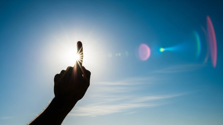 辛いことがあったら、空を見上げて指を一本立ててみてください。