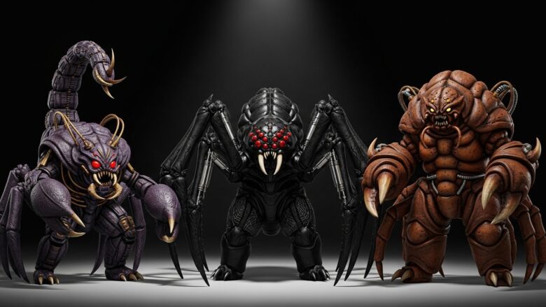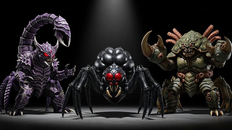 サソリをモチーフにしつつ、頭部の形状や紫色の体色が、高貴さと毒々しさを完璧に表現しています。